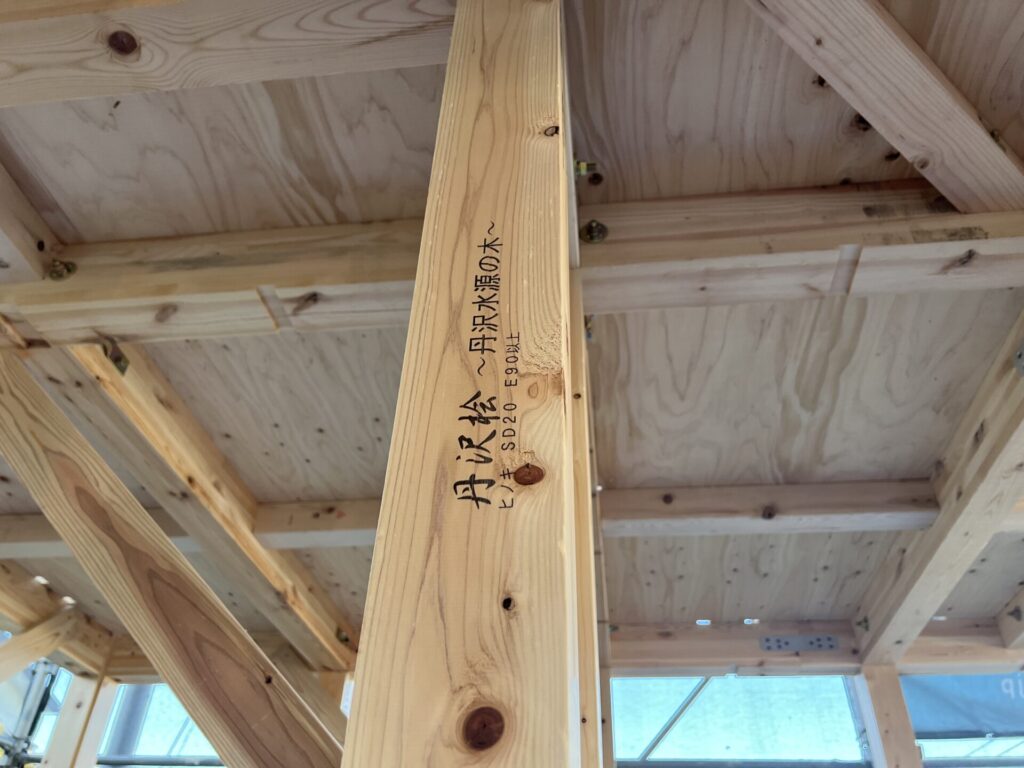 構造材には、地元・秦野の「はだのの木」を使用しています。 地域の気候で育った木は、この土地の家づくりに一番適しているんですよ。 お客様も「木の香りに癒されます」と、リラックスして見学されていました。