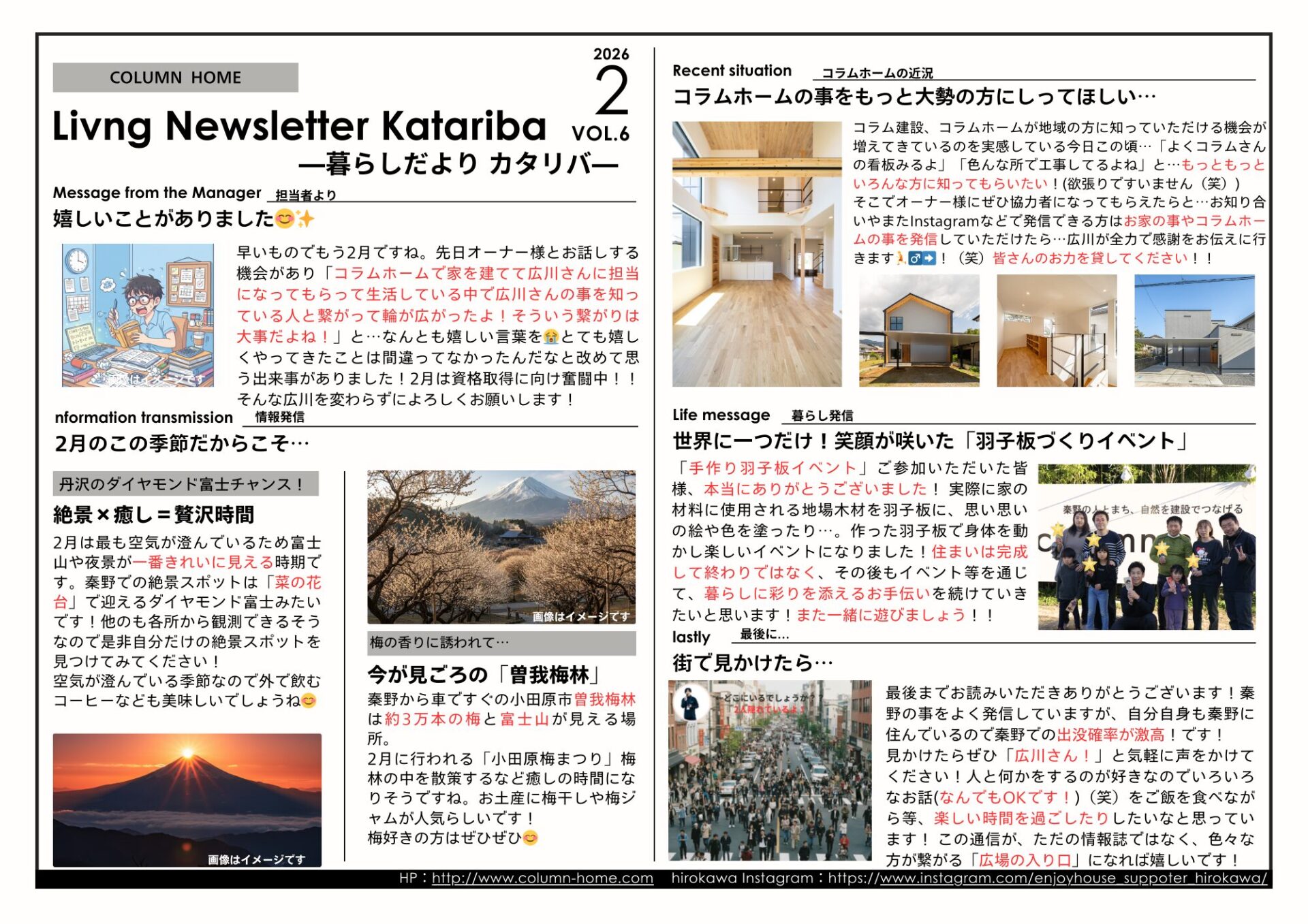 - 02月07日 個人デジタル情報誌「暮らしだより―カタリバ― 2月号」発行!!