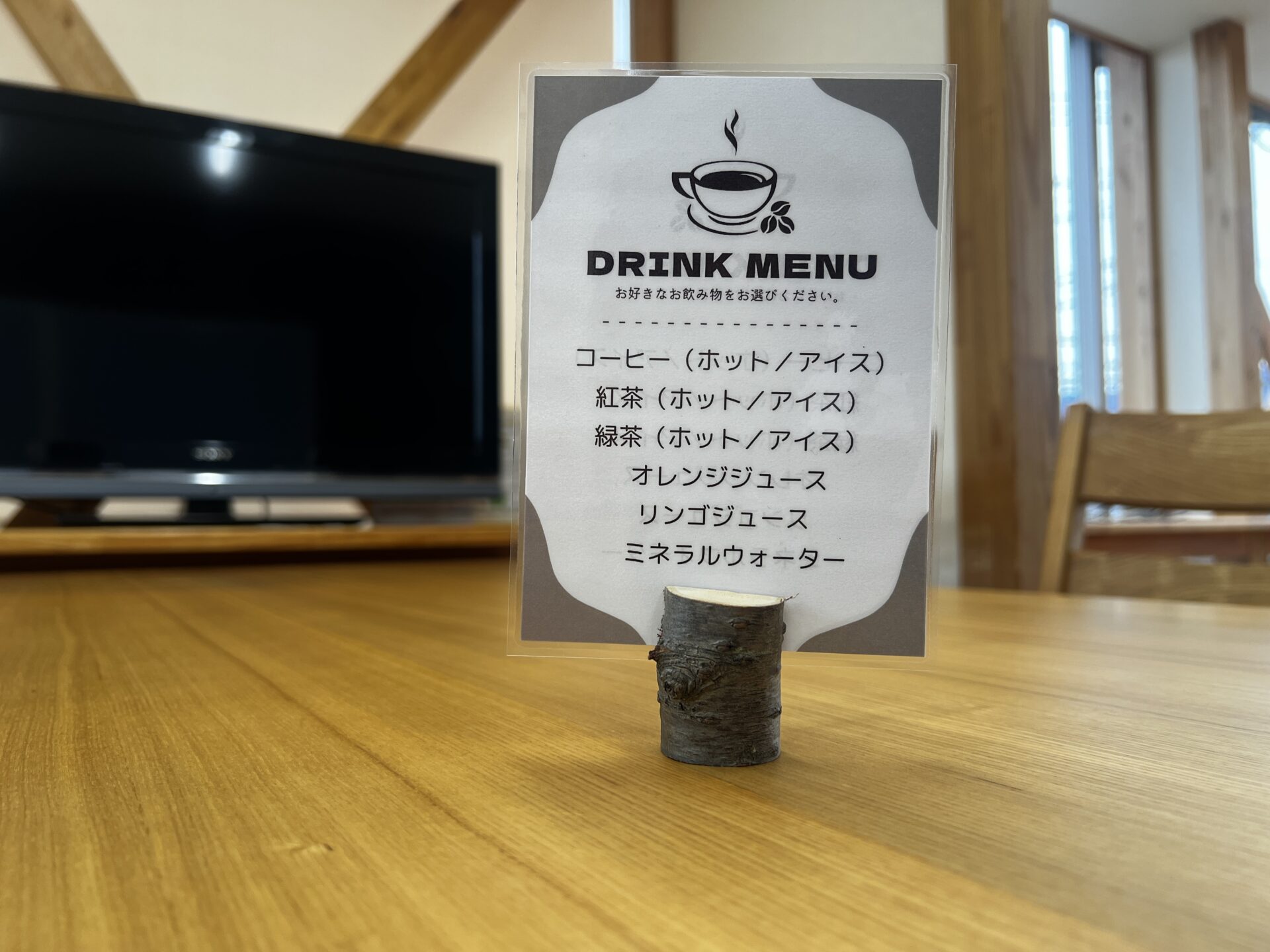 コラムホームでは秦野の木で家づくりを行っているのですが、今回「DRINK MENU」のカードを支えている木は秦野で取れた「桜の木」を使用しています!