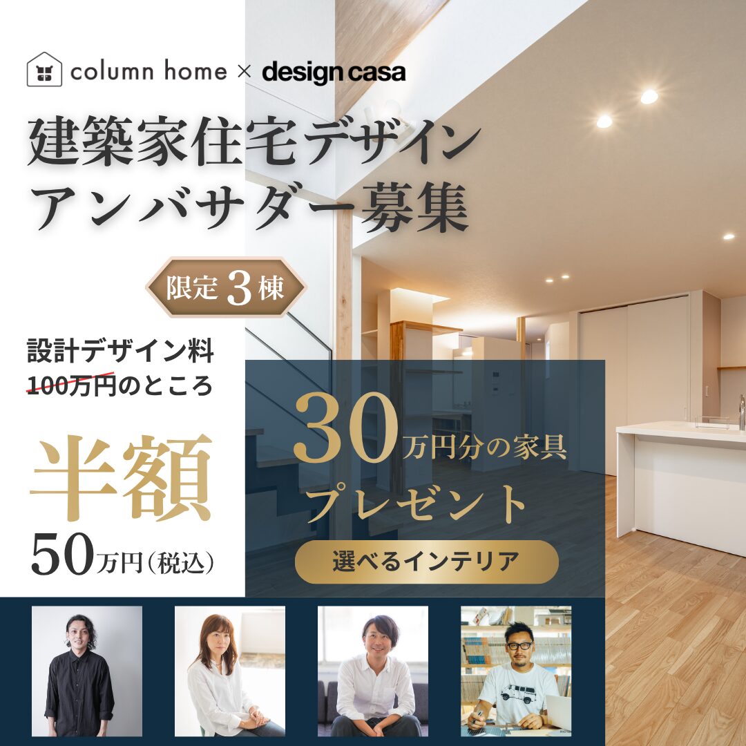 「アンバサダーへの感謝を込めて、設計・デザイン料はコラムホームが半額の50万円サポートさせていただきます。さらに、新しい暮らしを彩る